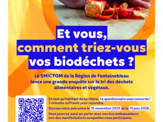 Le SMICTOM de la Région de Fontainebleau souhaite mieux connaître les habitudes et les besoins des usagers et usagères, par rapport aux déchets alimentaires et végétaux. Les résultats viendront alimenter une étude qui a pour objectif de réduire la quantité des ordures ménagères et de mieux valoriser ces déchets alimentaires et végétaux.